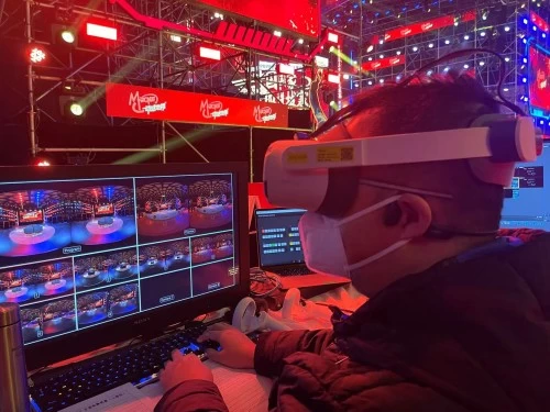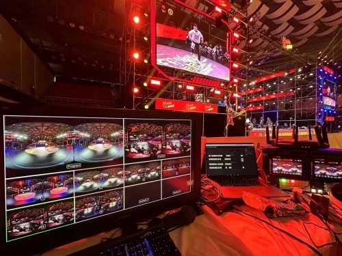 于路介绍,为了满足本场精彩赛事的制作直播要求,共启用了9套4K花园自主开发的8K满天星VR直播服务器和1套8K VR直播编码器,其中6套满天星服务器负责现场实时8K 3D VR摄像机的控制和VR ERP及误差校正和监看,保证最高质量的8K直播信号品质;2套满天星负责实时现场2D 360度4K VR信号的虚拟舞台拼接缝合及推流直播;1台满天星用于现场VR导播通过佩戴VR头显直接实时观看8K 3D VR效果,并完成多机位现场节目切换输出。两天比赛共超过20小时不间断直播和推流,整套系统以极佳的稳定性、可靠性运行,展现了专业转播系统支撑顶级赛事的现场服务能力。