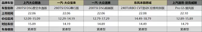 为更直观进行数据比对,本次决选特选择近一年上市的新车型,分别为售价15.09万元的上汽大众朗逸280TSI DSG星空永逸版(以下简称:朗逸)、售价14.19万元的一汽-大众宝来280TSI DSG尊行版(以下简称:宝来)、售价14.89万元的一汽-大众速腾 200TSI DSG超越版(以下简称:速腾)、售价14.49万元的东风本田思域240TURBO CVT劲动C位客特别版(以下简称:思域)、售价14.79万元的上汽通用别克威朗Pro GS猎风版(以下简称:威朗)。