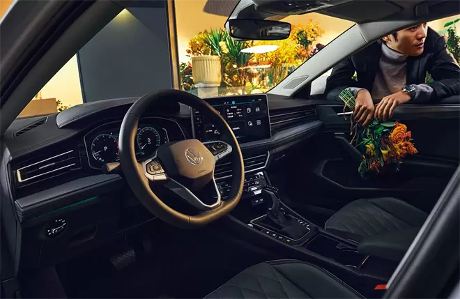 同为一汽-大众旗下车型,速腾的座舱内部工艺则有所不同。菱形绗缝的座椅,搭配中央扶手的打孔拼接设计再加上大面的积软质包覆和从仪表板延伸至门板的镀铬装饰,用料扎实,细品足见精致实力。除此之外,全系全景大天窗、电动遮阳帘等配置,让用户行驶时身披阳光,抬头即星辰大海。