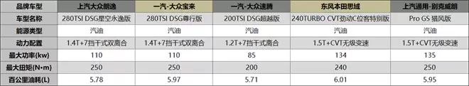作为刚需家轿,高性价比是核心竞争力之一。朗逸与宝来同样搭载1.4T+7挡干式双离合的动力组合,拥有110kW的最大功率与250N·m的最大扭矩,不过朗逸的5.78L百公里油耗比宝来更低。搭载1.2T+7挡干式离合的速腾,动力表现是几款车型中最差,而5.71L的百公里综合油耗则是几款入围车型中最低。为运动市场而生的思域,搭载1.5T+CVT无级变速箱的组合,拥有134kW的最大功率和240N·m的最大扭矩,参数上可圈可点,而6.01L的百公里综合油耗却是几款入围车型最高。搭载同样1.5T+CVT组合的威朗,拥有最出色的135kW的最大功率和250N·m的最大扭矩,百公里综合油耗略低于思域,为5.95L。