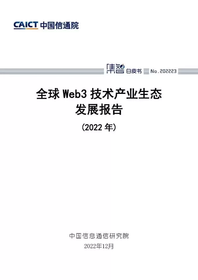 近日,中国信息通信研究院(以下简称“中国信通院”)正式发布《全球Web3技术产业生态发展报告(2022年)》。