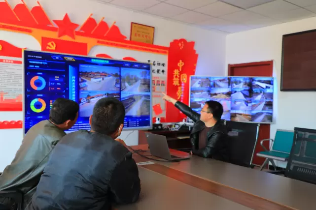 在石头坑村村委会,村干部通过数字乡村平台查看村里实时动态