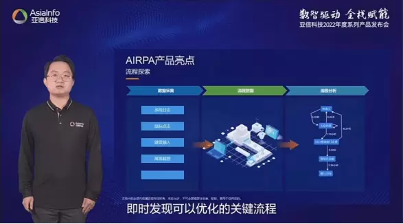 本次发布的亚信科技机器人流程自动化平台AIRPA,依托任务挖掘、流程挖掘能力完成自动化机会检索,结合低代码、RPA、IDP等技术进行自动化流程制作。“流程探索”功能可帮企业全面洞悉业务流程,即时发现优化空间和可被机器人替代的作业流程。该产品能满足企业桌面自动化、流程分析、流程预测等需求,并提供持续监控和流程改进服务。产品已在18个省市的80余个项目落地商用,赋能政务、通信、金融、教育、物流、零售等行业,并获得众多行业殊荣。