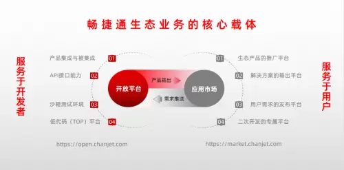 随着市场环境以及客户需求的不断发展,畅捷通生态发展在不断进化,从渠道型生态、服务型生态,到当前的平台型生态,基于平台的共生共赢,团结更多行业ISV、智能硬件、战略联盟、金融服务、数据服务等伙伴,互为生态伙伴,构建多元化大生态服务。