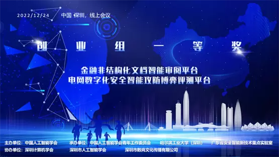 在创业组中,达观智能团队的《金融非结构化文档智能审阅平台》、工深智汇(深圳)科技有限公司团队的《数字化安全智能攻防博弈评测平台》荣获创业组一等奖。