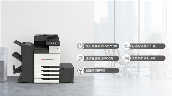 面对企业级用户日常大量的文印输出需求,奔图A3系列产品高效的输出速度和强大的纸张处理能力,能有效缓解高负荷用户的文印输出压力。奔图A3智能复合机最高打印速度达到了65页/分钟,进纸容量最大可达6650页,最大月打印量高达27500万页。此外,奔图A3数码复合机还拥有高达150页的自动输稿器,可高效满足企业批量复印、扫描的需求。助力文印输出提效,奔图A3产品全系配备自动双面打印功能,减少纸张浪费,解放员工手动操作的繁琐。能耗方面,实现1级能耗,更加节能环保,进一步帮助企业控制成本。
