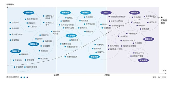 从场景应用维度看,智能化场景在行业的落地随着时间的推移,正呈现出更加深入、更加广泛的趋势。人工智能持续为提升用户体验做出贡献,当前诸如智能客服、智能推荐、精准营销等场景深入落地到各行业;人工智能也在精准科学防疫,加强公共卫生安全体系建设中承担重要角色,在病毒演变预测、疫苗药物研发、辅助诊断等维度实现广泛应用;长期来看,企业通过在数字人等数字化营销内容创作领域布局,创造差异化的营销体验,升级品牌形象;另外,科学家们越来越多地利用人工智能技术和方法,从数据中建立模型,重点围绕新药创制、基因研究、新材料研发等领域加速对前沿科学问题的探究。