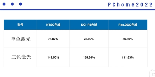 然而单色激光与三色激光之间的差别,不仅体现在高深的技术层面,还表现在消费者肉眼就可辨别的画质上。