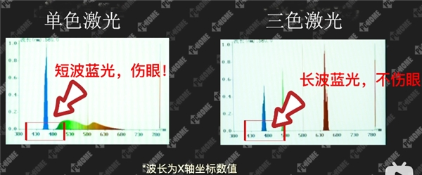 除了在画质方面,单色激光与三色激光间有着天壤之别。在健康护眼方面,单色激光也难敌三色激光。