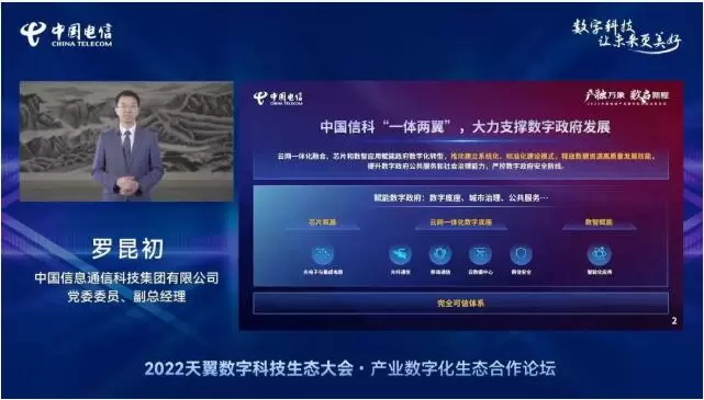 在大会同期举办的产业数字化生态合作论坛上,中国信科集团党委委员、副总经理罗昆初发表了《以数字政府为纽带,构筑和人民群众更牢固更多元的数字联接》的主题演讲,分享中国信科在数字政府领域的趋势洞察和实践应用。