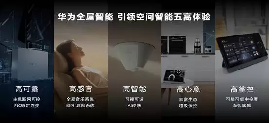 华为全屋智能3.0集多项创新与突破于一身,围绕“五高”(高可靠、高感官、高智能、高心意、高掌控)与影音娱乐(全屋音乐)、安防、遮阳、照明、用水、家电/家具等十大子系统,以及超级快控2.0、AI超感传感等生活技术创新,致力于打破智能化家居沟通难题,全力推动中国家庭的智慧化发展进程。