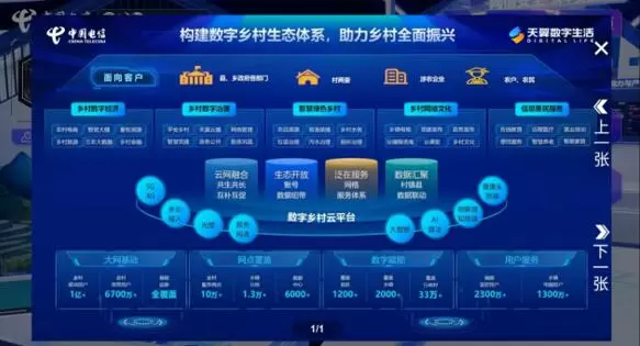 乡镇大脑,汇聚村户信息、平安乡村、天翼云播、综合治理、智慧党建等功能模块,实现村镇信息上传下达;天翼云播,利用摄像头外接音柱,实现“一点录入,多终端播放”的实时和定时播报,广泛应用于信息传达、应急指挥、政策宣传等场景,同时连接烟感、摄像头等设备,联动升级,可以实现智能播报……