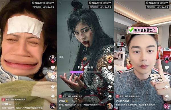 据介绍,本次活动筛选了2022年1月1日-12月25日期间,特效上线30日内达到投稿激励等级达到B,年轻分达到8,累积总投稿量达到100万以上,并通过官方评审团综合评定的原创特效师作品。上榜作品会收录到特效面板“年度潮流特效”专属列表中,并享受抖音官方提供的流量加持。