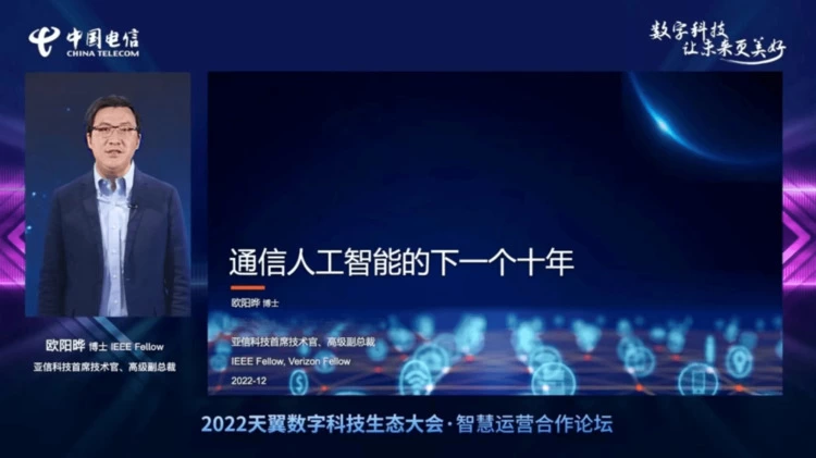 12月29-30日,亚信科技CTO兼高级副总裁、IEEE Fellow欧阳晔博士,副总裁王祝勇应邀出席2022中国电信天翼数字科技生态大会云上大会。大会旨在携手各界合作伙伴进一步探索数字科技新技术,繁荣数字科技新生态,共建美好数字中国。