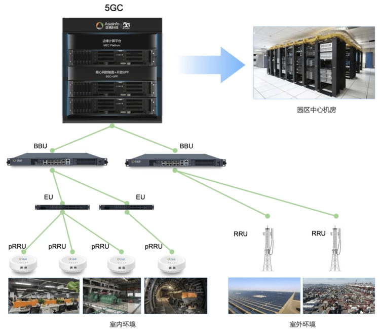 亚信科技5G专网产品在企业生产运营环节提供数据高可靠、安全隔离、低时延、大带宽的通信能力,解决大中型企事业单位数字化转型中对通信网络的差异化应用需求。5G专网产品包括AMF、SMF、UPF、AUSF&UDM、PCF、NRF、NSSF等全套核心网网元,以及BBU基带处理单元、EU扩展单元和pRRU远端射频单元等无线网基站设备。亚信科技5G核心网与基站产品为用户提供大带宽、低时延、高可靠、高安全和完全自主可控的5G专用网络。亚信科技5G专网已在核电、风电、交通、化工等多个行业落地商用,在大量的商用案例中,亚信科技5G专网产品发展出了一系列行业特色能力,如5G LAN、Framed Routing、网络切片、二次认证、灵活N6隧道、上行大带宽、高精度室内定位、智能节能等,实实在在的解决了垂直行业客户的痛点。