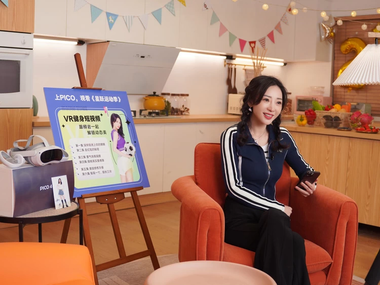 在全景MRC模式下,用户与柳岩共同置身《超燃一刻》运动场景,在击打道具的过程中感受VR运动的酣畅淋漓。摘下PICO 4,柳岩与我们分享在VR中运动的感受,她认为VR运动3分钟的效果可以媲美在健身房热身15分钟的效果,并且还有着更好的体验感,比在家跟练更沉浸,比去健身房更方便,运动反馈和感官更加真实,VR健身的专业性和趣味性超乎她的想象。
