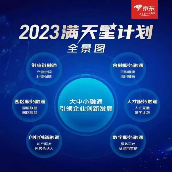 据悉,“2023满天星计划”将进一步整合京东集团优势能力与资源,聚焦供应链融通、金融服务融通、人才服务融通、数字服务融通、创业创新融通、园区服务融通六大维度打造大中小企业融通发展平台,全方位助力行业产业与经济社会高质量发展。