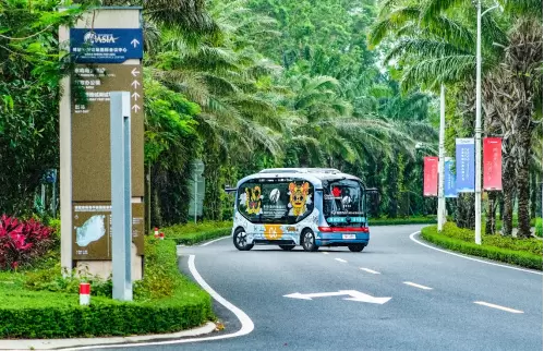 在海南省琼海市博鳌镇东屿岛,一条长达17公里的运营线路上,乘客可通过APP自助约车,自动驾驶小巴不仅能够自动识别红绿灯、变更车道、在路口转弯等,还会及时避让其他车辆、自行车、行人。无人清扫车则沿着规划好的路线自动进行清扫和消毒作业。无人售货车在道路沿途为游客提供扫码即停、招手即停服务。