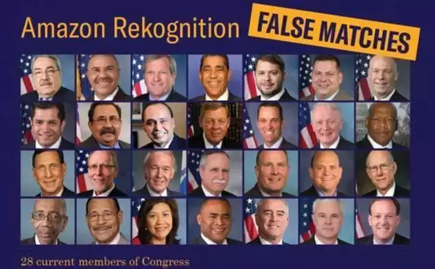 据报道,美国公民自由联盟从“公开来源”下载了2.5万张警方拍摄的罪犯脸部照片,然后将535位国会议员的官方照片交给亚马逊的人脸识别产品Rekognition处理,问它在2.5万张照片中是否有照片与国会议员匹配?