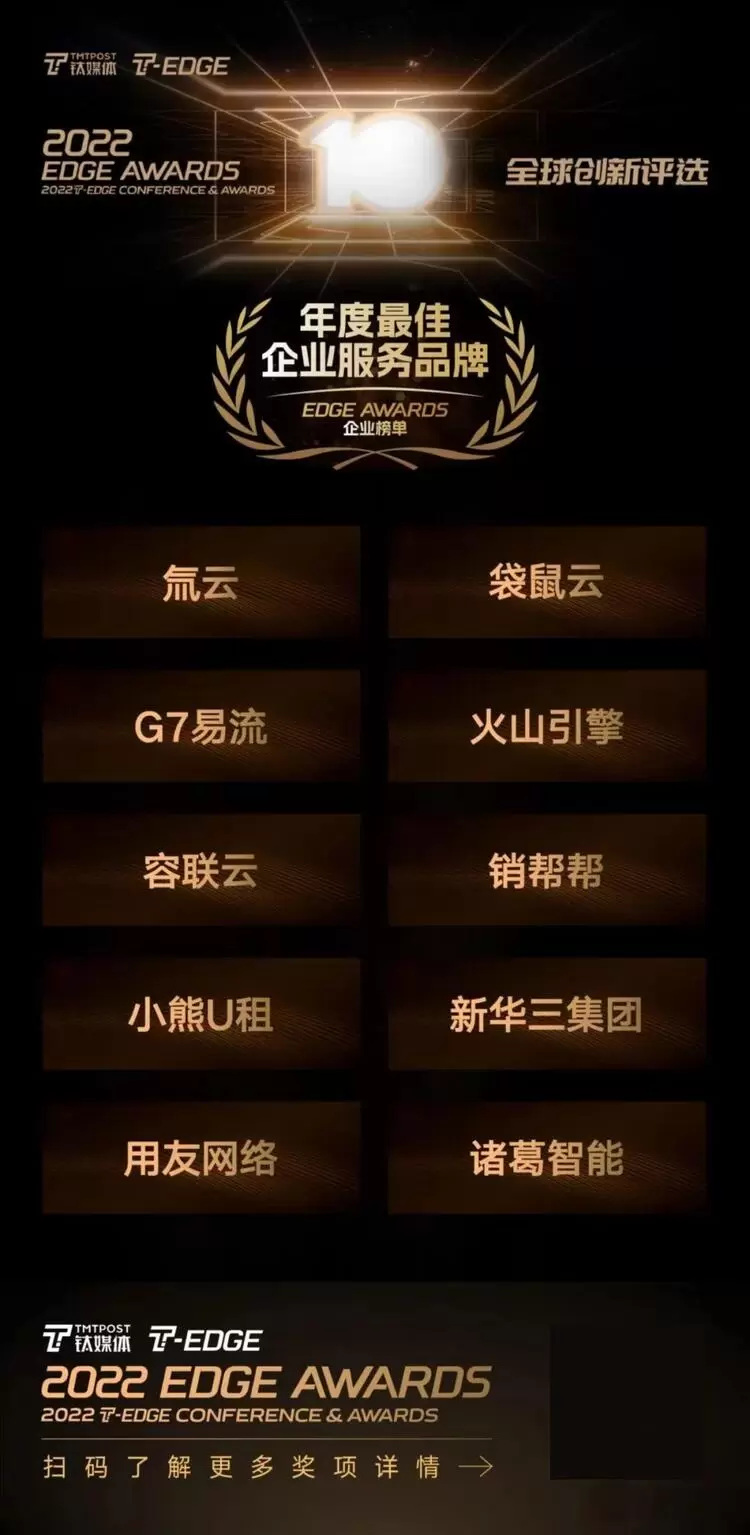 近日,钛媒体2022 T-EDGE全球创新大会上,2022 EDGE AWARDS企业榜正式发布。容联云携旗下数据智能品牌诸葛智能双双登榜“年度最佳企业服务品牌”。