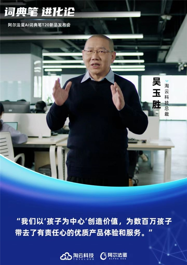 “词典笔的每次进化,阿尔法蛋都在用心为孩子创造价值,为数百万孩子带去了有责任心的优质产品体验和服务。”吴玉胜表示,阿尔法蛋连续多年蝉联京东天猫抖音多平台品类销冠,收获了广泛的好评和认可。在随后展示的用户口碑短片中,来自全国各地的用户用最真诚的语言表达了对阿尔法蛋AI词典笔的认可。