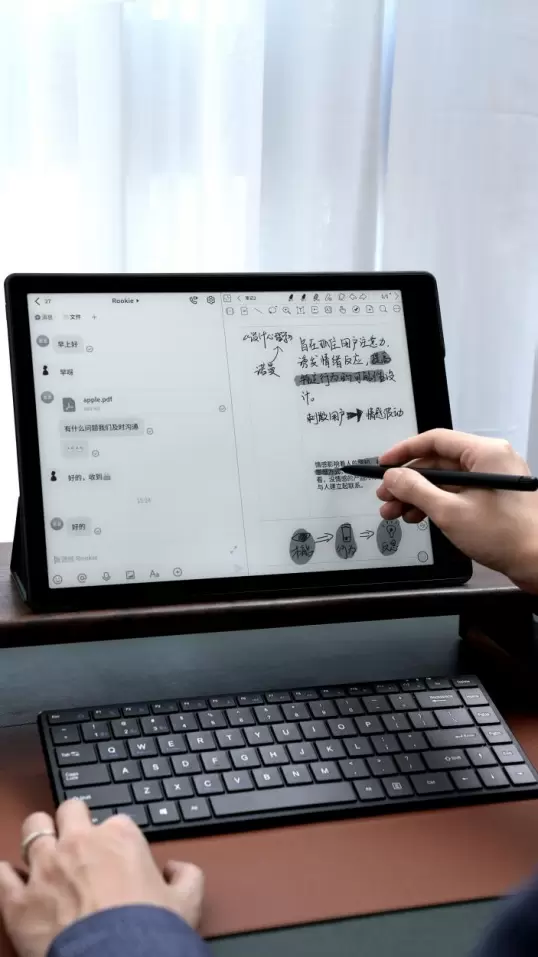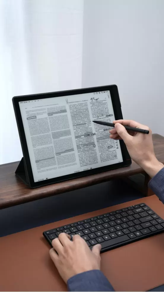 强大的阅读功能,在大尺寸屏幕上更能体现出其能力,优秀的PDF阅读能力,适合学术研究的专家们阅读文献资料;配合手写笔提笔即来,做笔记或者记录重要灵感;连接蓝牙键盘进行文字输入,效率翻倍。