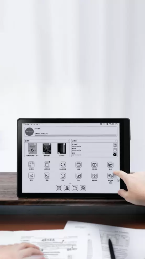 这次Tab13快刷效率平板搭配的全新专属于Tab系列的BOOX OS系统更是一大亮点。首先整个UI界面更接近于我们平时使用的手机、平板产品的界面,从视觉设计和交互使用方面做了很大的提升,即便是新用户,上手操作也是非常容易;其次是提供了桌面的DIY设计,用户可以将常用的APP自定义到自己习惯用的位置,使用起来更加的方便人性化;同时,用户还可以通过手势操作,如三指下滑截屏、左右内滑返回上一级等,极大的提高的操作的便捷性;当然还有其他丰富强大的功能,使得交互更加人性化。如果用几个字来概括全新的BOOX OS操作系统的话,那就是“简”、“快”、“自由”。