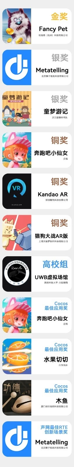 《奔跑吧小仙女》《KandaoAR》《猫狗大战AR版》获得铜奖