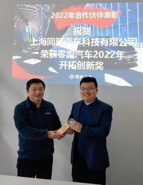 上海同驭汽车科技有限公司凭借雄厚的技术实力,荣获“零跑汽车2022年度开拓创新奖”。