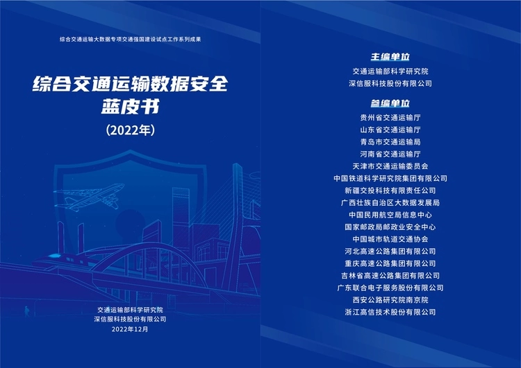 蓝皮书由交通运输部科学研究院、深信服联合主编,贵州省交通运输厅、山东省交通运输厅、新疆交投科技有限责任公司、河北高速公路集团有限公司、重庆高速公路集团有限公司等17家单位联合参编。