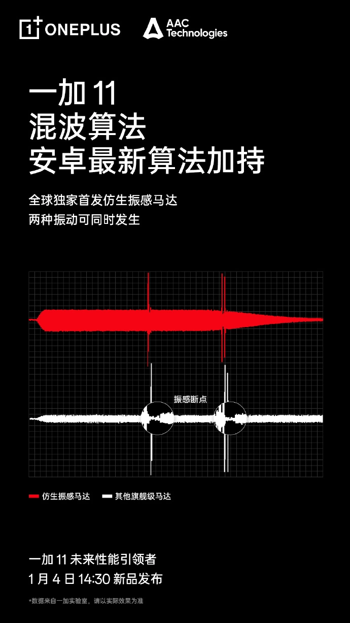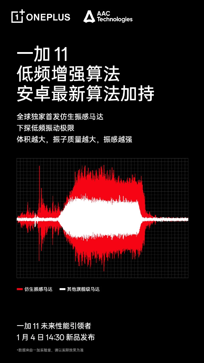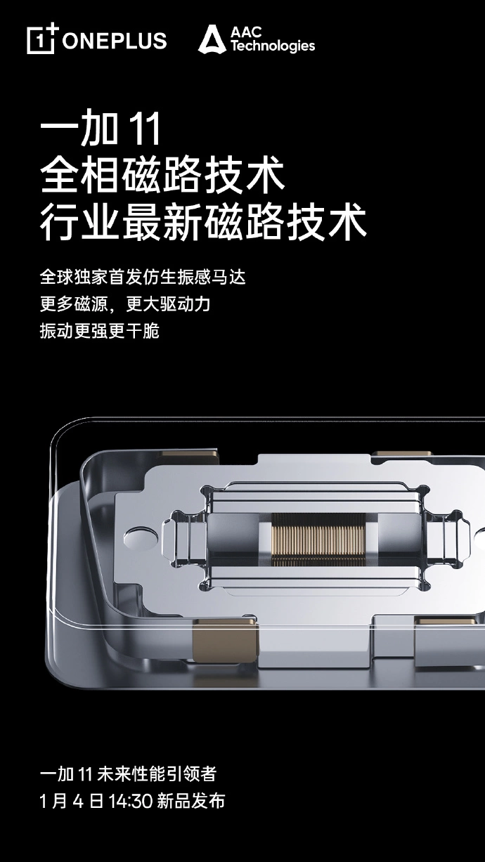 触觉方面,一加11独家首发瑞声科技仿生振感马达,并凭借最新第四代马达技术平台CSA、行业首款低频增强算法及安卓首款混波算法等多项技术算法加持,将手机振感体验带入到全新的时代。