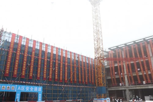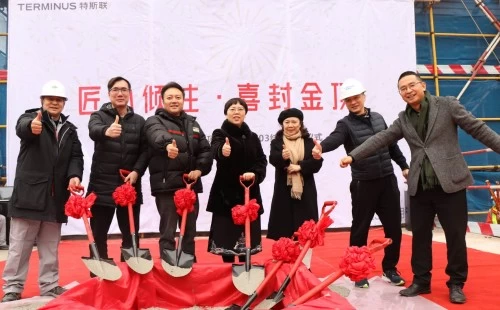 ▲特斯联创始人兼CEO艾渝(左三)、特斯联COO涂孙红(中)等领导出席封顶仪式