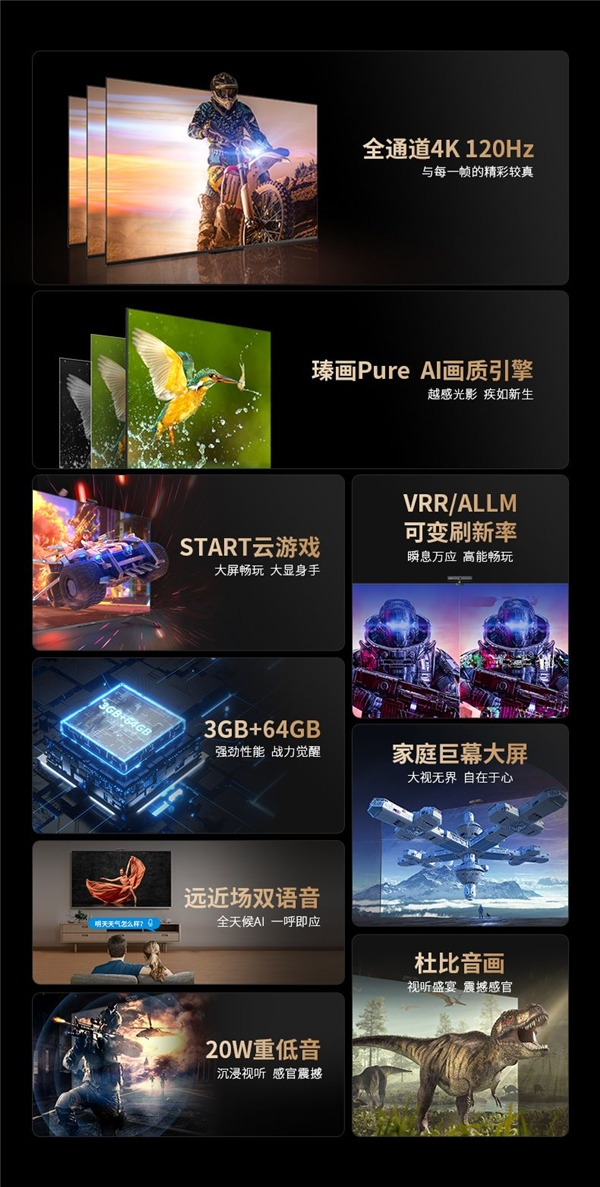 追求场景真实还原、欢乐互动的朋友,不妨看下夏普AQUOS V系列,该系列定位游戏电视,配置了全通道120Hz技术,并在瑧画Prue AI画质引擎技术的加持下,可以对图像进行多维度优化重构,还原真实画面,并保障了电视画面的流畅丝滑,也是得益于强大的画质技术配置,夏普AUQOS V系列可以在使用场景中提升沉浸感,引领观众至画面的真实场景中。不仅如此,夏普AQUOS V系列天空音和杜比全景声的配置,可以营造出出众的声场环绕,这也将大大增加画面的视觉冲击,仿佛置身在影院中的观看体验,对于视听觉是一种绝对的震撼冲击。