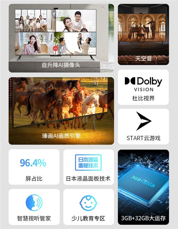 全面屏、自升降AI摄像头、瑧画AI画质引擎,一眸欣启视趣随心,这就是夏普4T-M75U5EA,一台主打极致AI音画的4K电视。该机型致力于打造极致视听的双重盛宴,瑧画AI画质引擎通过多项算法可以从场景、亮度、色彩饱和度、对比度和细节层面等多维度进行优化重构,有效提升原有画面分辨率,改善观感,并且,该机还配置了杜比视界和MEMC运动补偿功技术,软硬件层面多重诠释夏普电视强大的画质表现力。同时,因为DTS Virtual:X天空音的存在,环绕声场更强,更能突出影片的代入感,沉浸式享受每一帧画面。