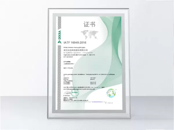 通过此次认证,意味着光迅科技车载光电子产品管理过程得到了国际权威机构认可,符合汽车领域设计和生产要求,可向汽车相关行业客户提供品质保障及支持。未来,光迅科技将充分发挥光电子产品技术领先优势,坚决按照ISO9001、TL9000、IATF16949等质量管理体系要求,持续提升产品及服务品质,不断推进与行业领域客户的深度对话合作,以实现更好共赢发展!