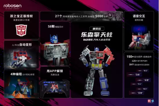 北京时间2023年1月13日上午10点,国内消费级机器人厂商「Robosen乐森机器人」于大中华区正式上线新品「乐森擎天柱 精英版」,这也是该款产品于2022年10月上线美洲地区以来首次登陆国内市场。作为乐森在IP化家庭娱乐式机器人领域推出的第三款变形金刚产品,与此前明星产品「乐森擎天柱 旗舰版」面向全球变形金刚专业粉丝并定位限量收藏级市场不同,此款新品在保留旗舰版功能基础上做了技术迭代,以更小的体型,更轻盈的重量面向喜欢科技产品的大众消费市场,意在为全球家庭用户提供更友好的把玩交互体验。