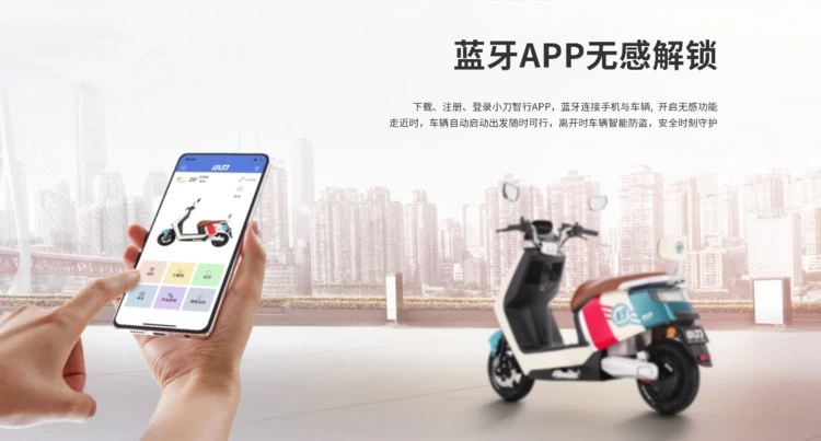 当然更值得一提的是,小刀电动车还是有颜有料的代表,有着蓝牙无感解锁等智能配置,只需手机扫描下载APP,绑定车辆后即可实现靠近即解锁,离开就自动落锁设防,即使忘带钥匙也能轻松出行,省时省力!