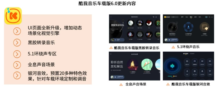 - 酷狗音乐车载版V6.1四大升级!蝰蛇座舱环声、HiFi现场带来“声声沉浸”
