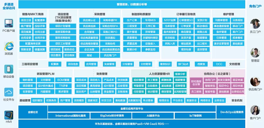 华为云与金蝶云·星空的专家团队,对华海通信的战略意图和业务需求进行了快速梳理,确定了以工程项目为核心的建设思路。基于华为云基础设施底座,以及金蝶提供的智能制造解决方案、PLM研发解决方案、智能财税解决方案、工程项目解决方案等,双方经过68天的艰苦奋斗,成功对华海通信的184个国外系统进行了全面替换,基于工业互联网平台的全业务场景协同解决方案成功上线,覆盖供应链、智能制造、产品研发与管理、项目管理、协同办公等方面,帮助其实现全业务场景的数字化、透明化、可视化、网络化和智能化,提升企业数字化能力,顺利保障了华海通信业务的连续性,重构华海通信价值链。