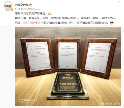 为了让大众消费者更方便地体验到魅族 20系列等更多新品,在去年的「魅友大会 2022」上,魅族公布了更多用户关怀的举措,包括了未来三年将建设1000家魅族全场景体验门店并设立「魅友专区」。1月14日,魅族科技助理副总裁@老张David 发布微博感谢了在双十一期间各个电商平台和消费者对于魅族产品和服务的肯定,并宣布了将在今年完成新建400+服务门店的目标,持续聚焦服务品质,让消费者更好地感受到来自魅族的用户关怀。