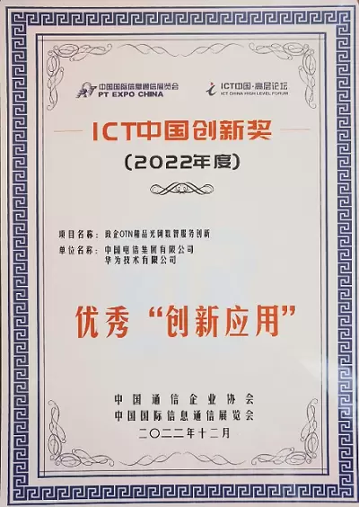 中国电信“政企OTN精品光网数智服务创新”获ICT中国“优秀创新应用”奖