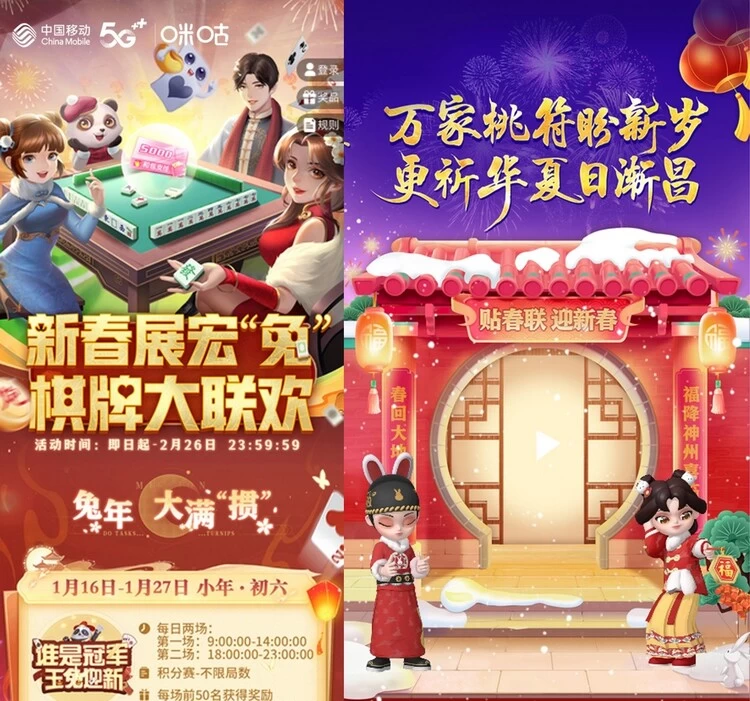 中国移动5G云游戏的这一番神操作,是否让你心动了呢?兔年春节锁定咪咕快游,呼朋唤友共同参与到各种丰富有趣的活动中,解锁跨端畅玩新技能,感受5G时代数智娱乐的新体验吧!