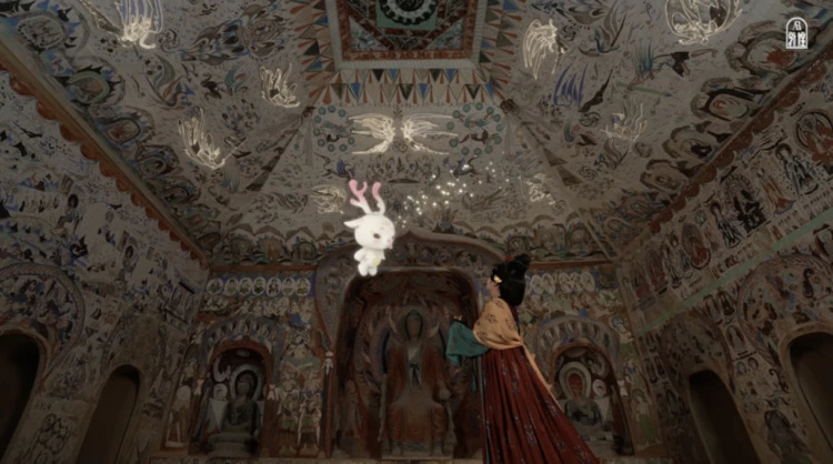 轻盈巧妙的敦煌飞天在飘逸,活色生香的九色鹿在奔跑。伏羲女娲、朱雀神兽、持节仙人……在现代AR技术的帮助下,它们栩栩如生,款款而来。沉睡了千年的敦煌诸神,正在被科技的力量唤醒。
