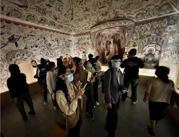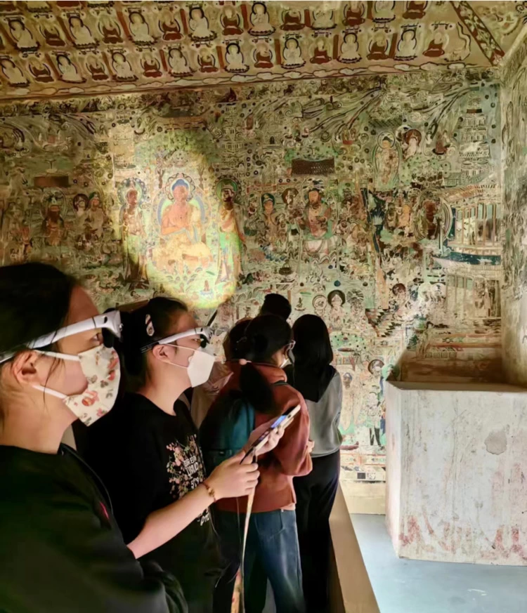 观众可以在莫高窟景区内的复制洞窟常设展览和巡展中,体验到包括第220窟、第45窟、第285窟等10个最经典洞窟的智能AR导览服务,享受科技的力量,更沉浸式地“走入”敦煌壁画的故事当中。