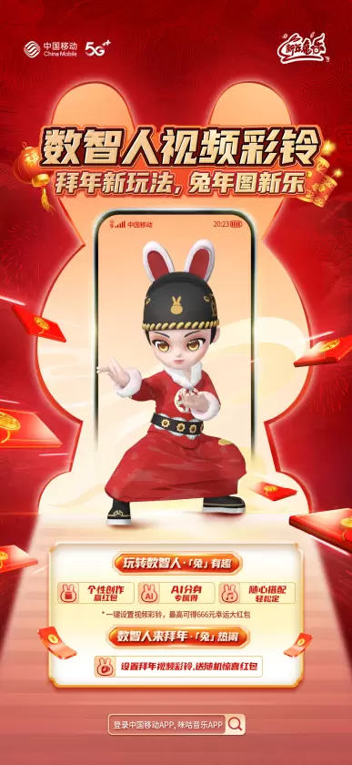 元宇宙拜年怎么玩?中国移动比特数智人视频彩铃送666红包
