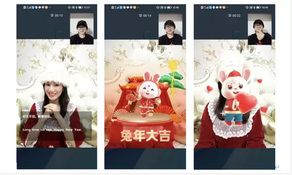 谁不想成为拜年风潮里的时髦玩家?!那就让智能应用来丰富你的社交人设,连接情感:视频通话过程中,你可以使用虚拟背景、虚拟头像、语音表情雨、手势动效等个性化体验。试试看对着视频那端的亲友说“恭喜发财”、“新年快乐”、“兔年大吉”,或做出“比心手势”、“点赞手势”会有意想不到的惊喜哦~