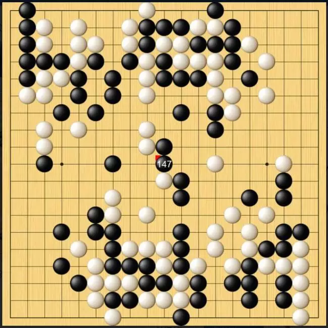 绝艺上午速胜AQ,下午续战拿到黑棋。序盘开始,执白的AQ开始祭出“模仿棋”战术,执黑的绝艺走到哪里,AQ就以天元为对称中心都在哪里。不过随着棋局的进行,“一直被模仿从未被超越”的绝艺依然淡定行棋,丝毫不为所动。棋入中盘,棋子逐渐向中腹蔓延,直到第147手,绝艺自然行棋落子天元,模仿棋自此终止!