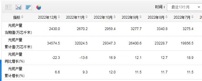 国家统计局:2022年全年我国光缆累计产量34574.5万芯千米