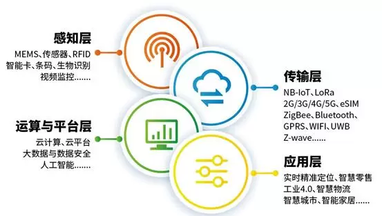 感知层:传感器、MEMS传感器、RFID、智能卡、条码、生物识别、视频识别、实时精准定位等.......