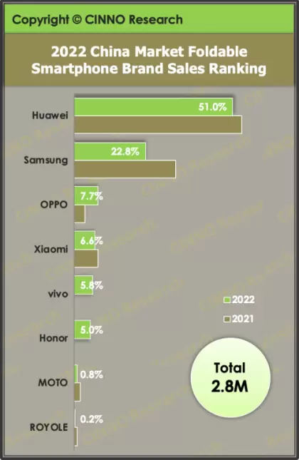 2022年中国折叠屏手机销量逆势同比增长144%,OPPO销量暴涨453%